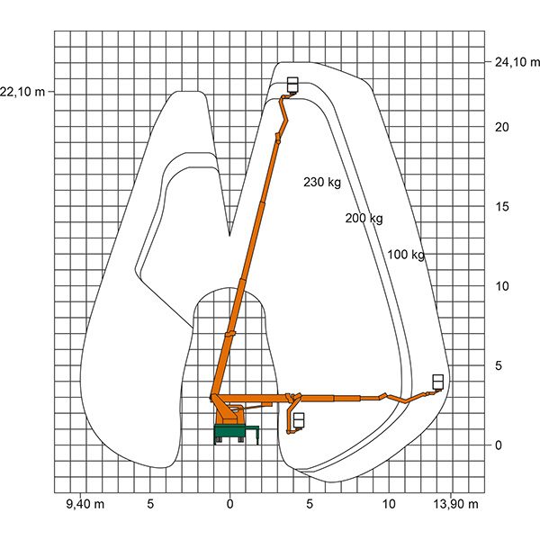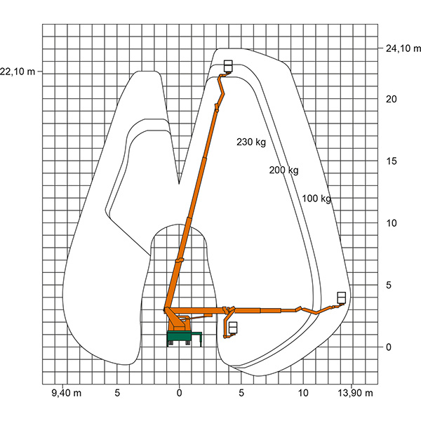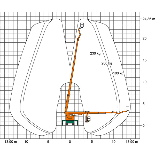 Cu noul Steiger TBR 250 de la Ruthmann, lucrați în condiții de siguranță și flexibilitate până la înălțimea 24,36 m. Intervalul maxim este 16,50 m.